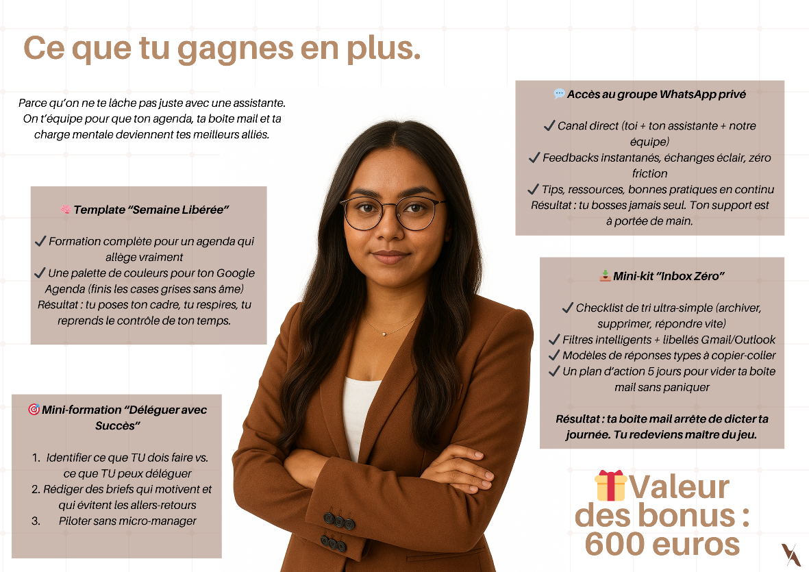 Avec SERENITY, tu gagnes une alliée de choc : 1 assistante dédiée, 20 heures par mois, concentrée à 100% sur ton business pendant que toi… tu respires enfin.